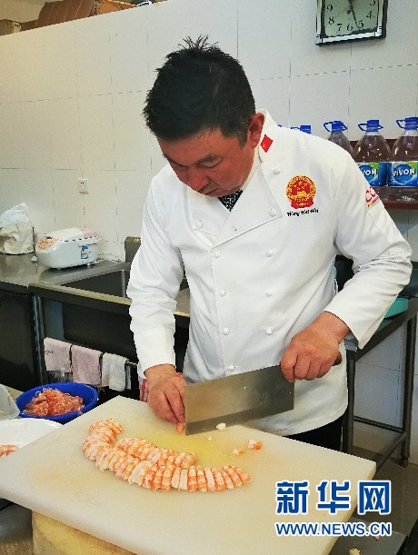 王海威在中國駐津巴布韋大使館準備食材。新華網(wǎng)發(fā)