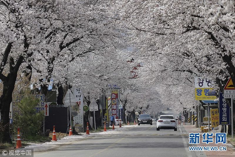 3月30日,韓國河東郡,當地櫻花盛開,吸引游人觀賞。(圖片來源:視覺中國)