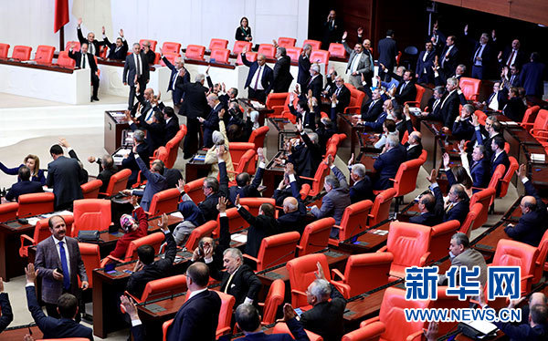 4月18日,在土耳其安卡拉,土耳其大國民議會就延長緊急狀態進行投票。新華社發