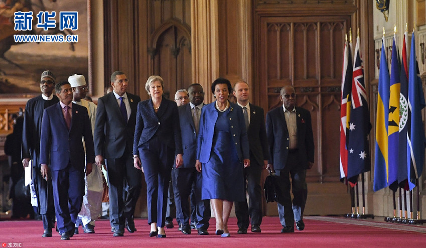 當地時間2018年4月20日,英國伯克郡,英聯邦政府首腦會議在溫莎城堡舉行。據外媒報道,查爾斯王子已經被批準接任下一任英聯邦元首。英聯邦各國領導人在溫莎城堡集體作出了這一決定。(圖片來源:東方IC