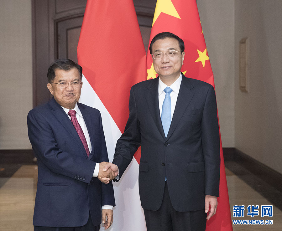 新華社雅加達5月7日電(記者彭天瀟 余謙梁)當地時間5月7日晚,國務院總理李克強在雅加達下榻飯店會見印度尼西亞副總統(tǒng)卡拉。