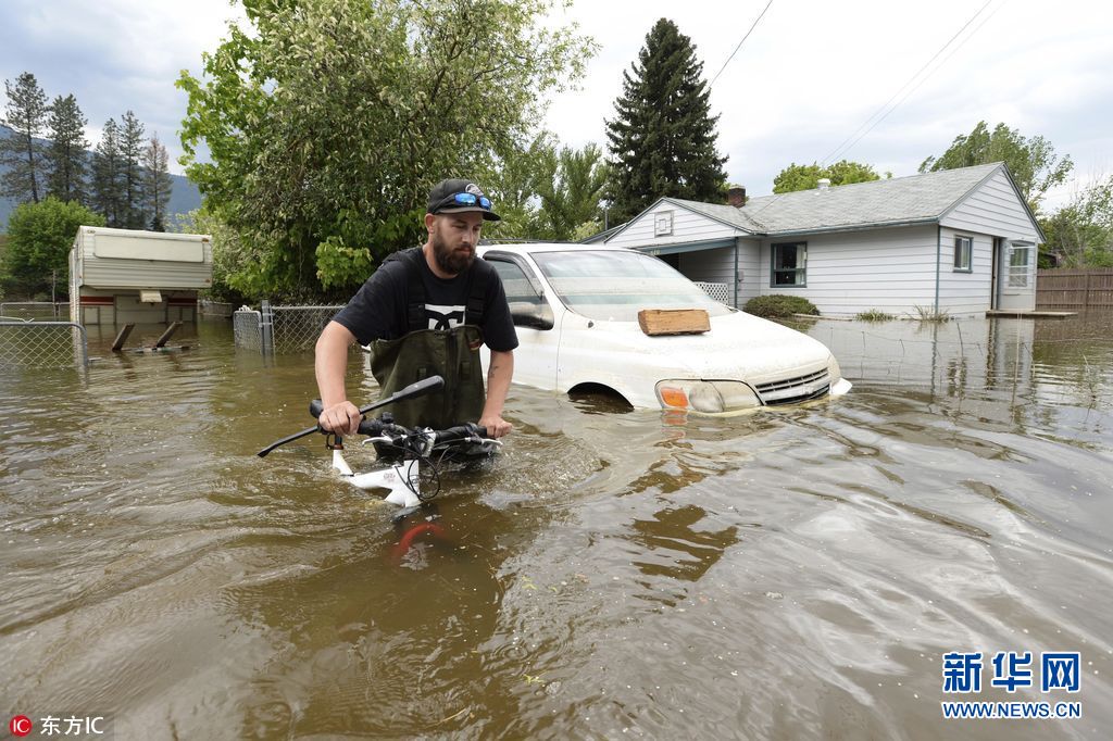 5月17日,加拿大不列顛哥倫比亞省Grand Forks,當地遭洪水襲擊,房屋、車輛浸泡水中。(圖片來源:東方IC)