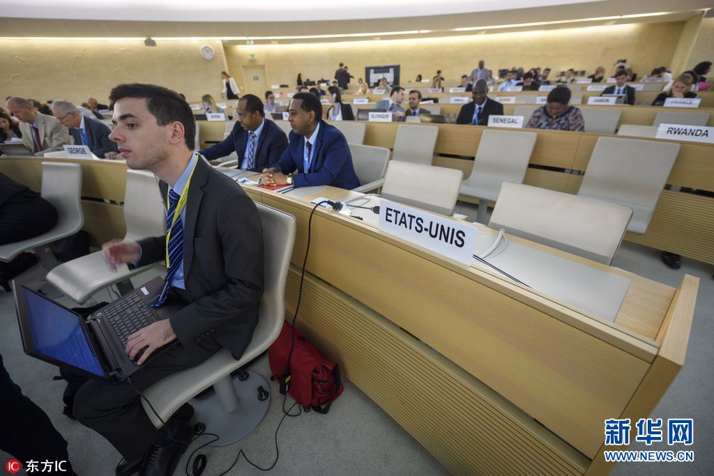 6月20日,瑞士日內(nèi)瓦,聯(lián)合國人權(quán)理事會召開會議,美國代表席位空缺。美國常駐聯(lián)合國代表黑莉19日下午在華盛頓宣布,美國退出聯(lián)合國人權(quán)理事會。(圖片來源:東方IC)