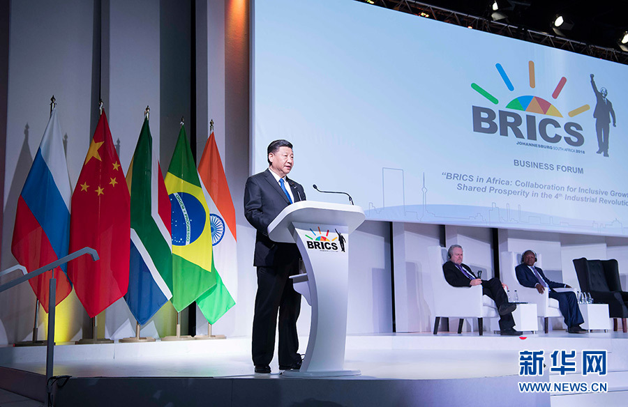 7月25日,國家主席習近平應邀出席在南非約翰內(nèi)斯堡舉行的金磚國家工商論壇,并發(fā)表題為《順應時代潮流 實現(xiàn)共同發(fā)展》的重要講話。新華社記者李濤攝