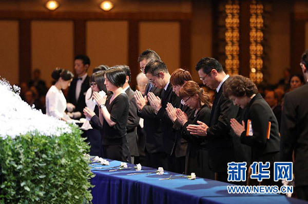 這是9月18日在日本東京拍攝的淺利慶太告別儀式現場。新華社記者 杜瀟逸 攝