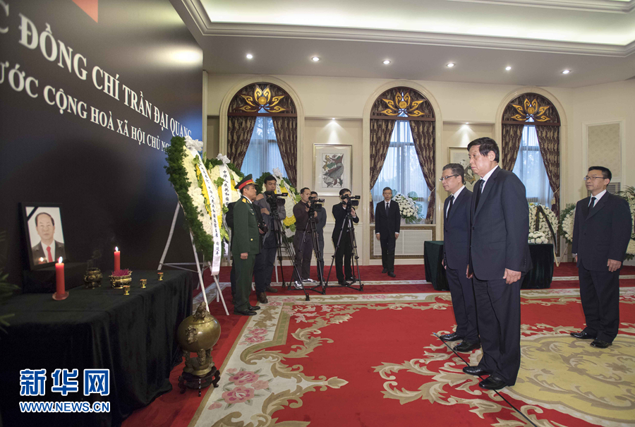 栗戰書敬獻花圈并在吊唁簿上題詞,對陳大光主席逝世表示深切哀悼。栗戰書表示,中方高度評價陳大光主席為發展中越兩黨兩國關系所作重要貢獻,習近平總書記、國家主席專門向阮富仲總書記發去唁電,正在訪越的中共中央政治局常委、中央紀委書記趙樂際出席了在河內的悼念活動。中越互為友好鄰邦和戰略伙伴,中方愿同越方一道,弘揚傳統友誼、增進政治互信、深化互利合作,推動中越兩黨兩國關系不斷發展。