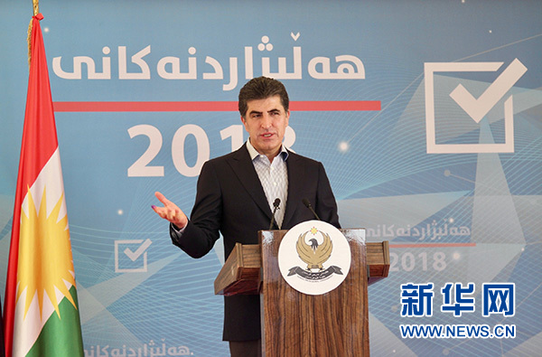 9月30日,伊拉克庫(kù)爾德自治區(qū)(庫(kù)區(qū))政府總理內(nèi)奇爾萬·巴爾扎尼在埃爾比勒市投票后出席新聞發(fā)布會(huì)。 新華社發(fā)(亞瑟爾·賈瓦德 攝)