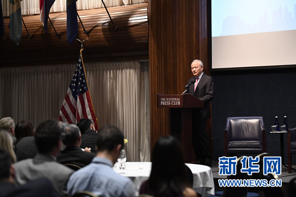 10月30日,中國駐美大使崔天凱在美國全國記者協會舉行的紀錄片《善良的天使》觀影活動上致辭。 新華社記者劉杰攝