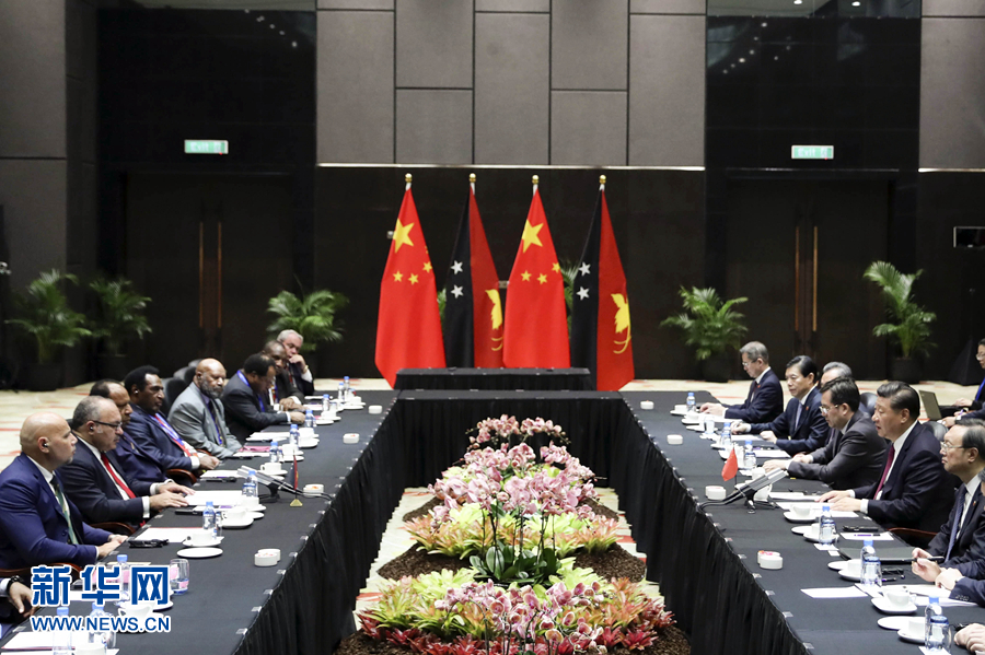 11月16日,國家主席習近平在莫爾茲比港同巴布亞新幾內亞總理奧尼爾會談。 新華社記者 丁林 攝