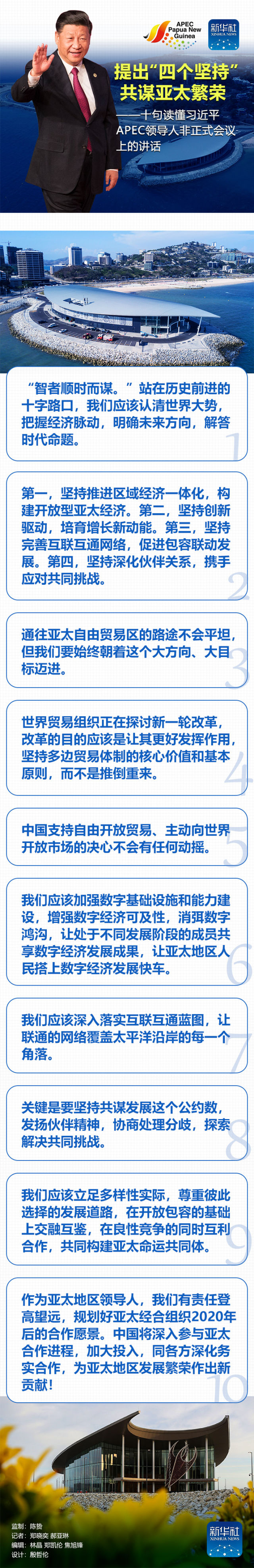 新華社莫爾茲比港11月18日電(記者鄭曉奕 郝亞琳)亞太經合組織第二十六次領導人非正式會議18日在巴布亞新幾內亞首都莫爾茲比港舉行,國家主席習近平出席并發表題為《把握時代機遇 共謀亞太繁榮》的重要講話。新華社為你劃重點摘金句。