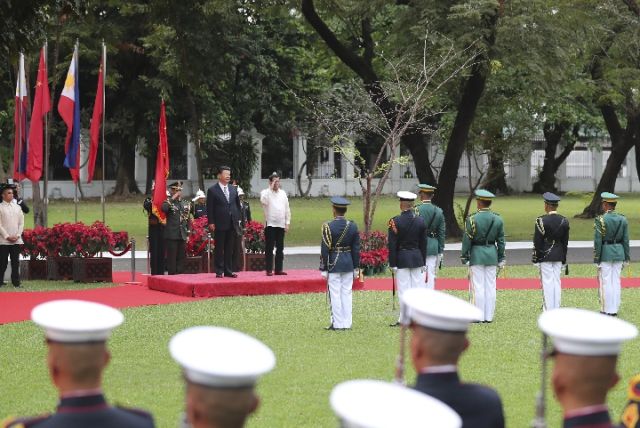 11月20日,國家主席習近平在馬尼拉同菲律賓總統(tǒng)杜特爾特舉行會談。會談開始前,習近平出席杜特爾特在總統(tǒng)府前草坪舉行的隆重歡迎儀式。(新華社記者 丁林 攝)