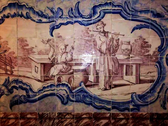 葡萄牙瓷磚畫(huà)展現(xiàn)的中國(guó)人生活場(chǎng)景。(新華社記者錢(qián)彤?dāng)z)