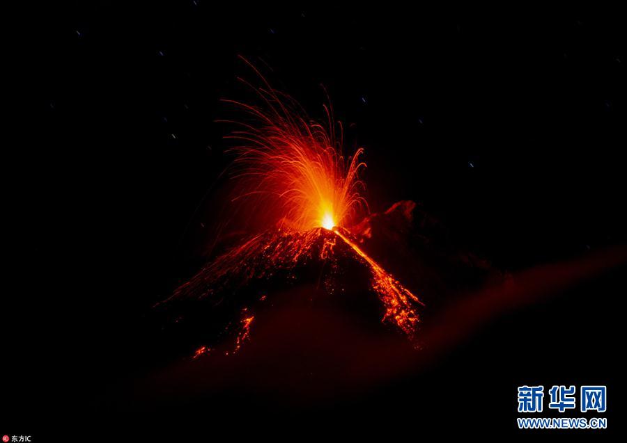 意大利埃特納火山噴發 熔巖噴射猶如煙火綻放