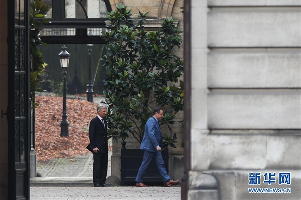 12月19日,比利時國王菲利普(左)在位于首都布魯塞爾的王宮送別前來會面的政要。新華社記者鄭煥松攝