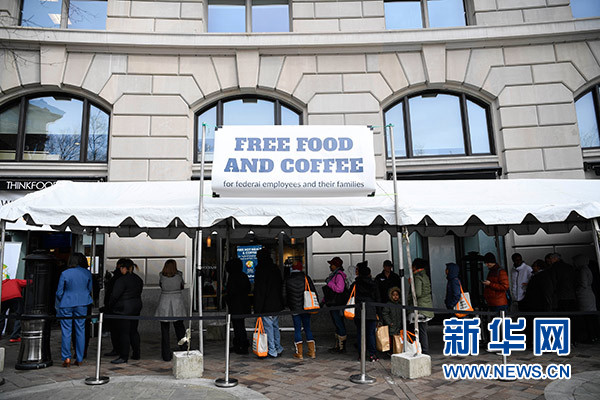1月23日,在美國首都華盛頓,一些聯(lián)邦政府雇員在一家公益組織的“應(yīng)急食堂”外排隊(duì)領(lǐng)取免費(fèi)餐。 新華社記者 劉杰 攝