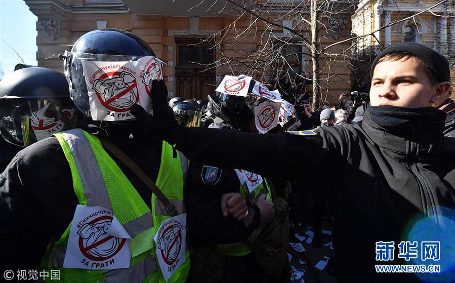 當地時間2019年3月9日,烏克蘭基輔,烏克蘭民族主義政黨的激進分子集會要求調查烏克蘭武裝部隊官員的腐敗問題,與警方發生激烈沖突。(圖片來源:視覺中國)