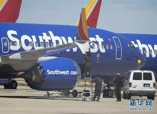 3月27日,在位于美國加利福尼亞州維克托維爾的南加利福尼亞物流機場,工作人員檢查美國西南航空公司的波音737 MAX 8型號飛機。美國波音公司27日發布公告,介紹了737MAX系列飛機軟件更新情況和對飛行員培訓的新內容。 新華社發(趙漢榮攝)