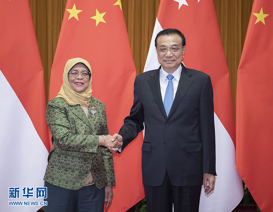 李克強表示,中國和新加坡隔海相望,兩國在相互尊重、平等合作、互利共贏基礎上發展了良好關系,給兩國人民帶來福祉。新加坡是個多元文明構成的社會。昨天,習近平主席同總統女士舉行了富有成果的會見,展望了兩國關系廣闊前景。中方愿同新方發揮各自優勢,保持良好合作勢頭,繼續挖掘合作潛力,將“一帶一路”倡議同新方發展戰略相銜接,推動中國西部地區和新加坡對接,扎實推進“陸海新通道”、第三方市場、智慧城市、技能培訓等領域合作。希望雙方推進文明和文化的交流,密切人員往來,夯實兩國友好的民意基礎,促進雙邊關系繼續向前發展。中方愿同新方共同應對全球性挑戰,為世界和地區的和平穩定發展作出貢獻。