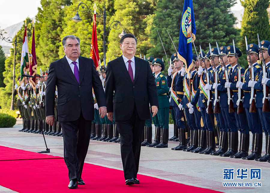 會談前,拉赫蒙在總統(tǒng)府前廣場為習近平舉行了盛大歡迎儀式。