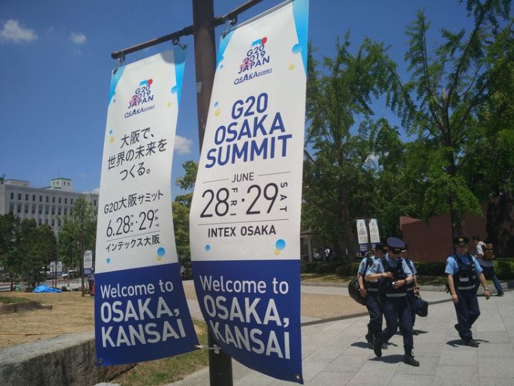 入夏的大阪,驕陽燦爛,綠意蔥蘢,海風(fēng)輕拂路人。隨著峰會(huì)臨近,在大阪主要景區(qū)、酒店、商廈及干道,均可以看到帶有二十國(guó)集團(tuán)領(lǐng)導(dǎo)人大阪峰會(huì)元素的標(biāo)牌、海報(bào)和條幅。