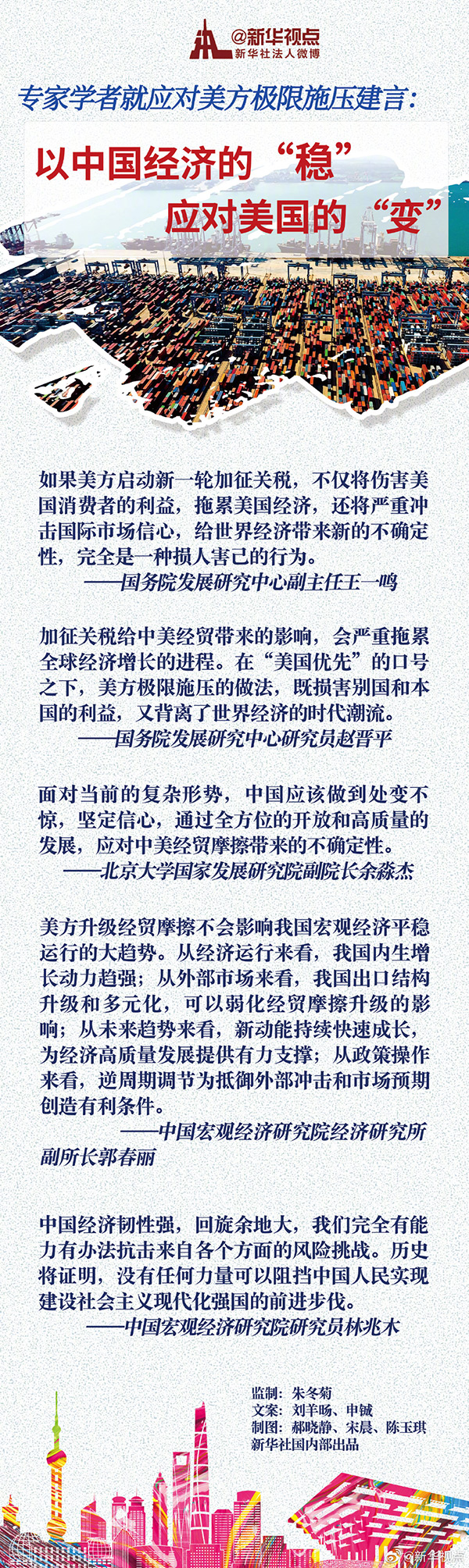 新華社北京8月7日電 題:以中國(guó)經(jīng)濟(jì)的“穩(wěn)”應(yīng)對(duì)美國(guó)的“變”——專家學(xué)者就應(yīng)對(duì)美方極限施壓建言