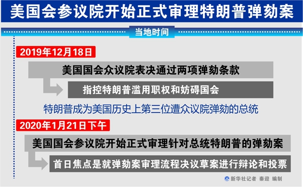 根據(jù)參議院多數(shù)黨(共和黨)領(lǐng)袖麥康奈爾當(dāng)天正式提交的決議草案,彈劾案審理主要包括開案陳述、交叉提問、參議院就是否傳喚更多證人或檢視更多證據(jù)進(jìn)行投票表決等階段。