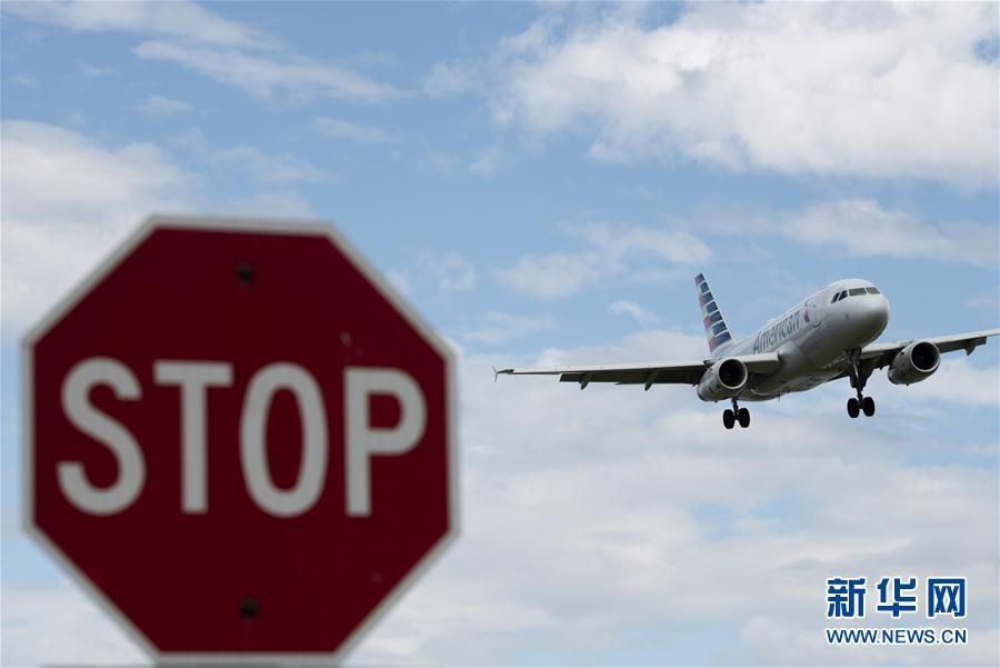這是3月10日在美國弗吉尼亞州阿靈頓拍攝的即將降落在華盛頓里根國家機場的飛機。美國總統特朗普11日宣布,美國將于當地時間13日起暫停除英國外所有歐洲國家前往美國的旅行,為期30天。新華社記者 劉杰 攝