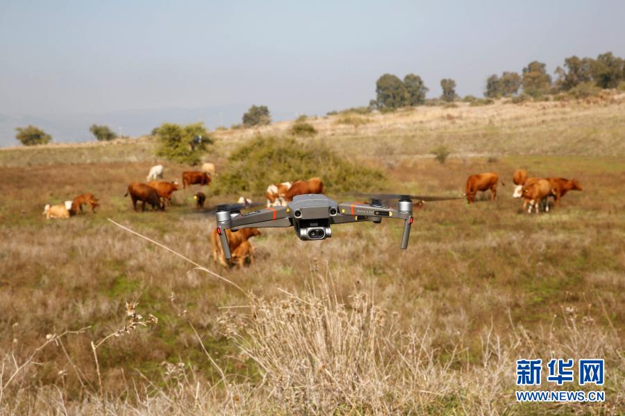 這是11月23日在戈蘭高地拍攝的正在牧牛的無人機(jī)。