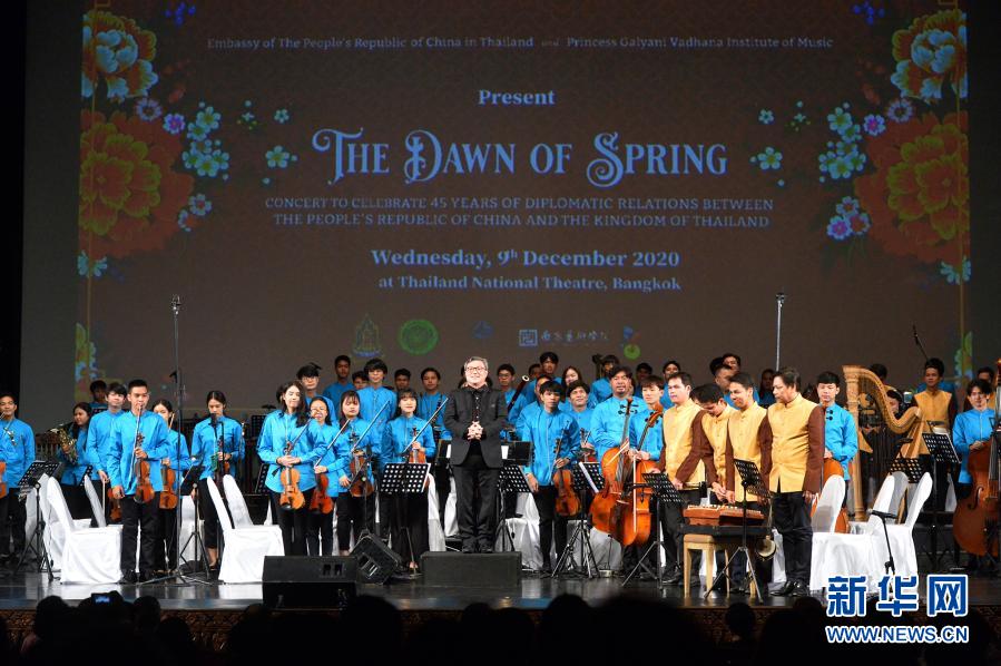 慶祝中泰建交45周年音樂會“春曉”9日晚在曼谷國家大劇院成功上演。這場融合了中國、泰國和西方音樂元素的音樂會由中國駐泰使館和泰國干拉耶尼音樂學院主辦,泰國文化部和中國南京藝術(shù)學院給予支持。