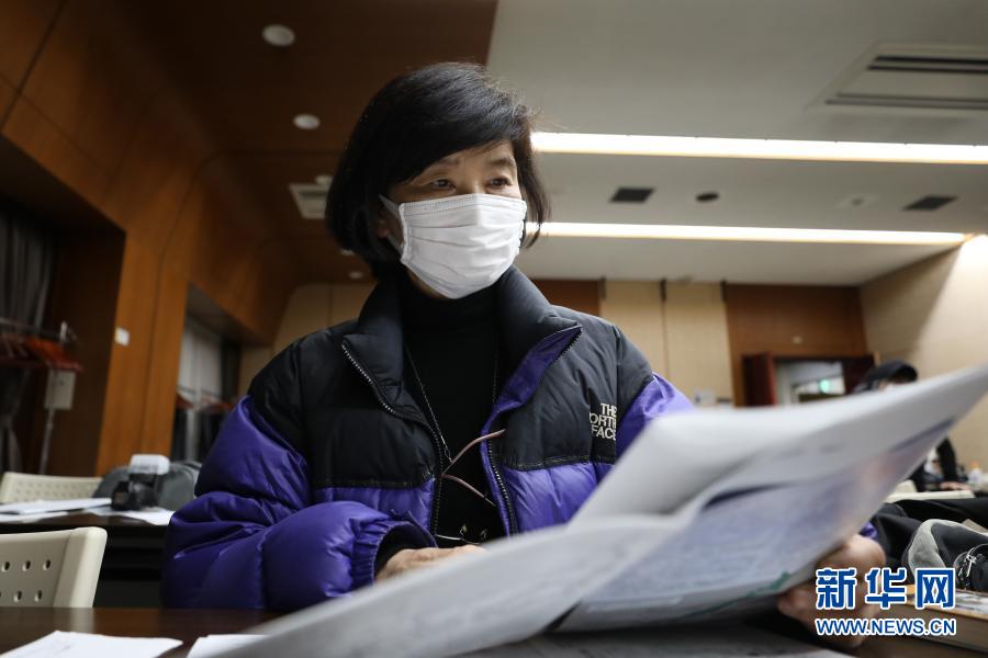 12月13日,佐藤江都子女士在日本東京舉行的紀念南京大屠殺83周年集會現場翻看相關資料。新華社記者 杜瀟逸 攝