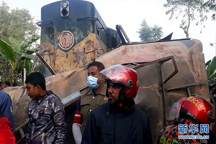 12月19日,孟加拉國西北部地區19日早上發生一起火車與客車相撞事故,事故導致12人死亡,另有數人受傷。新華社發(薩利姆攝)