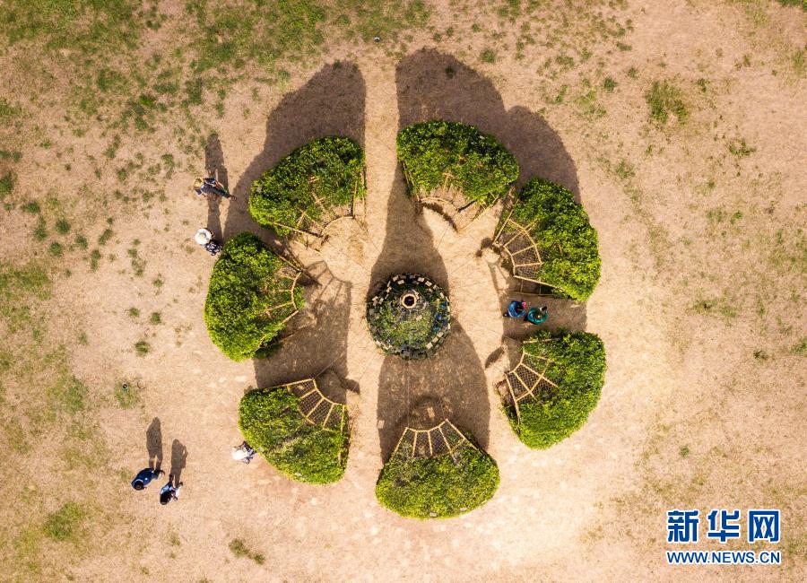 12月19日,游客在泰國呵叻府吉姆湯普森農場參觀游覽(航拍照片)。