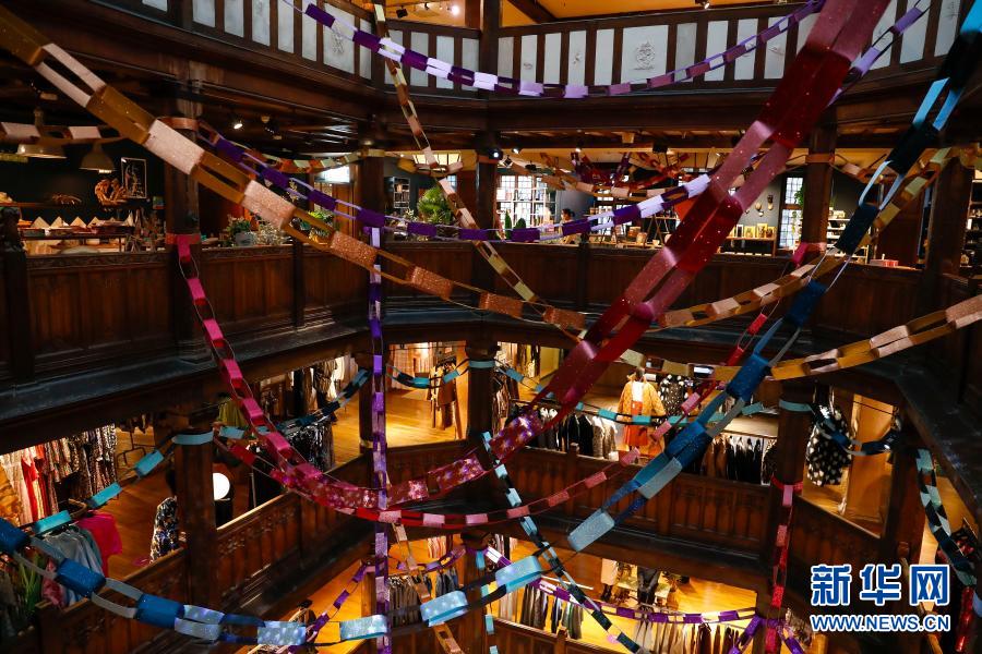 這是12月18日在英國(guó)倫敦卡納比街拍攝的一家百貨商店內(nèi)景。新華社記者 韓巖 攝
