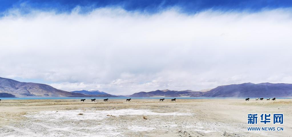 野馬在佩枯錯旁奔馳(5月14日攝,手機照片)。
